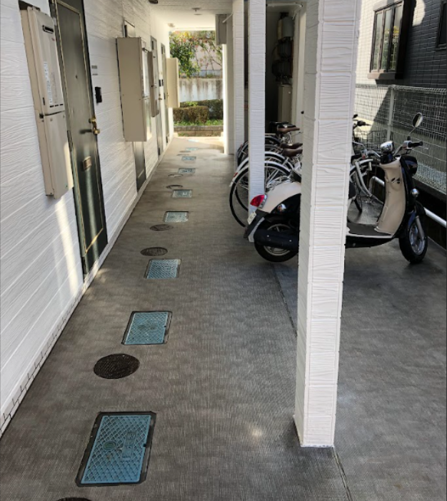 さらに、共用部分には長尺シートを施工。滑りにくく安全性が高いだけでなく、清掃性や耐久性にも優れ、居住者の方々に快適な共用空間を提供します。