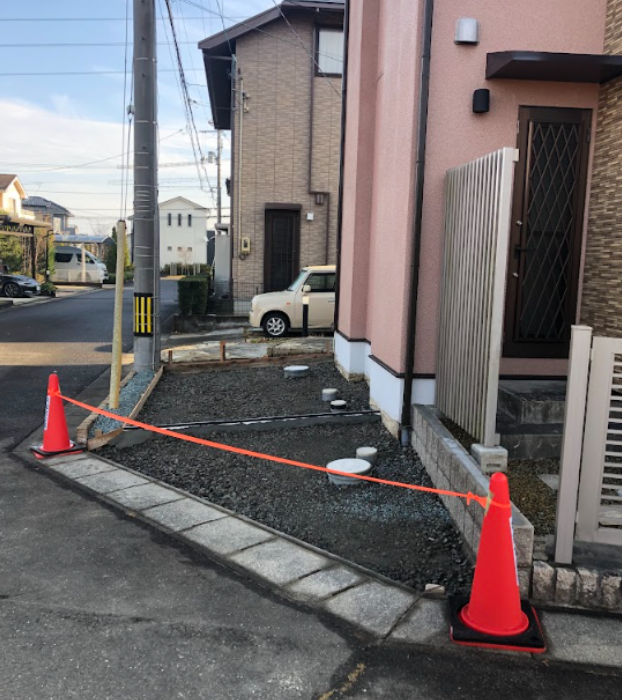 仕上げに土間コンクリートを施工し、使い勝手の良い駐車場へと拡張しました。
